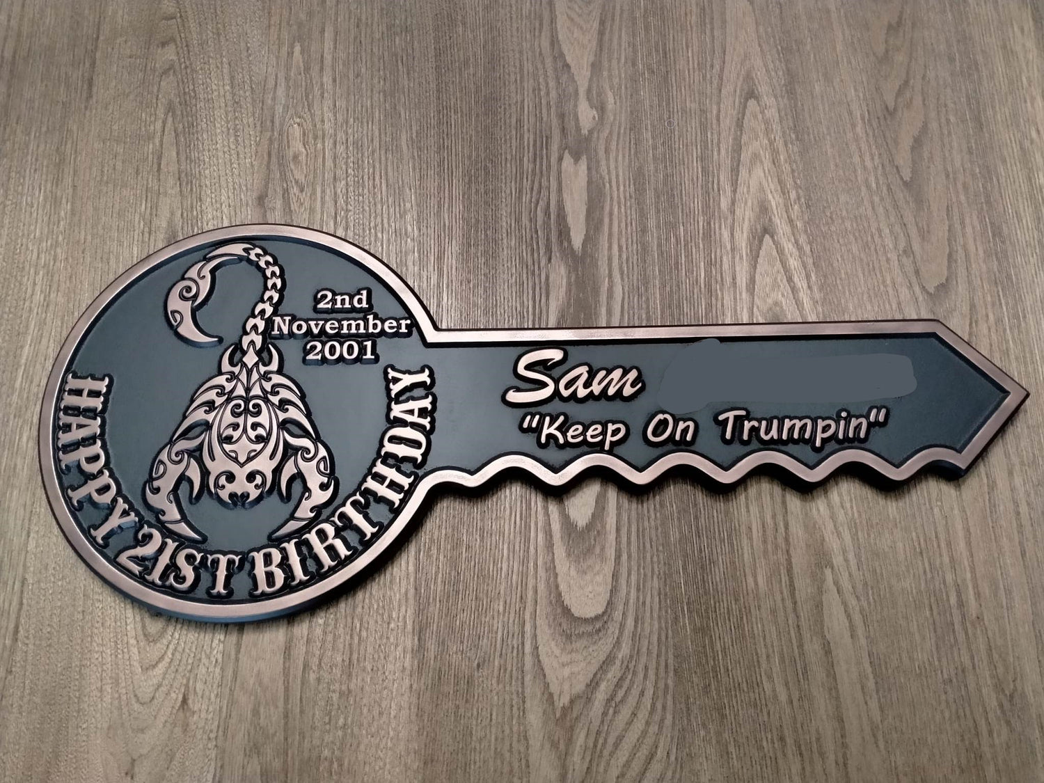 I came across Fifty 1 Fifty CNC Workz while looking for a 21st key for my son. I messaged Nick with a couple of ideas & within a day he had sent me through a couple of designs. Within 10 days I had an amazing original 21st key it was AWESOME & it was better than what I expected. I will be recommending them to anyone that wants something a little different done. Thank you so much, I can't wait to see my son's face.