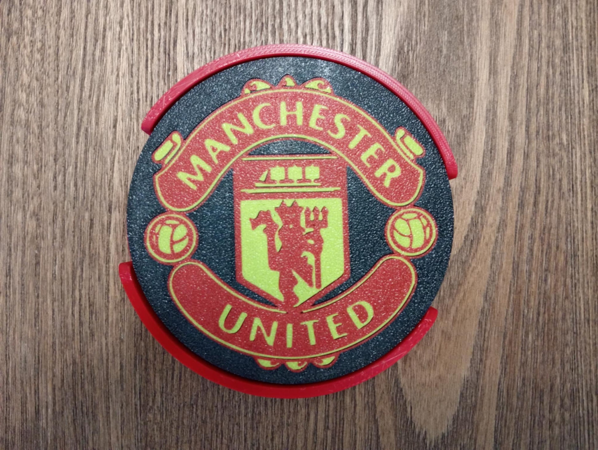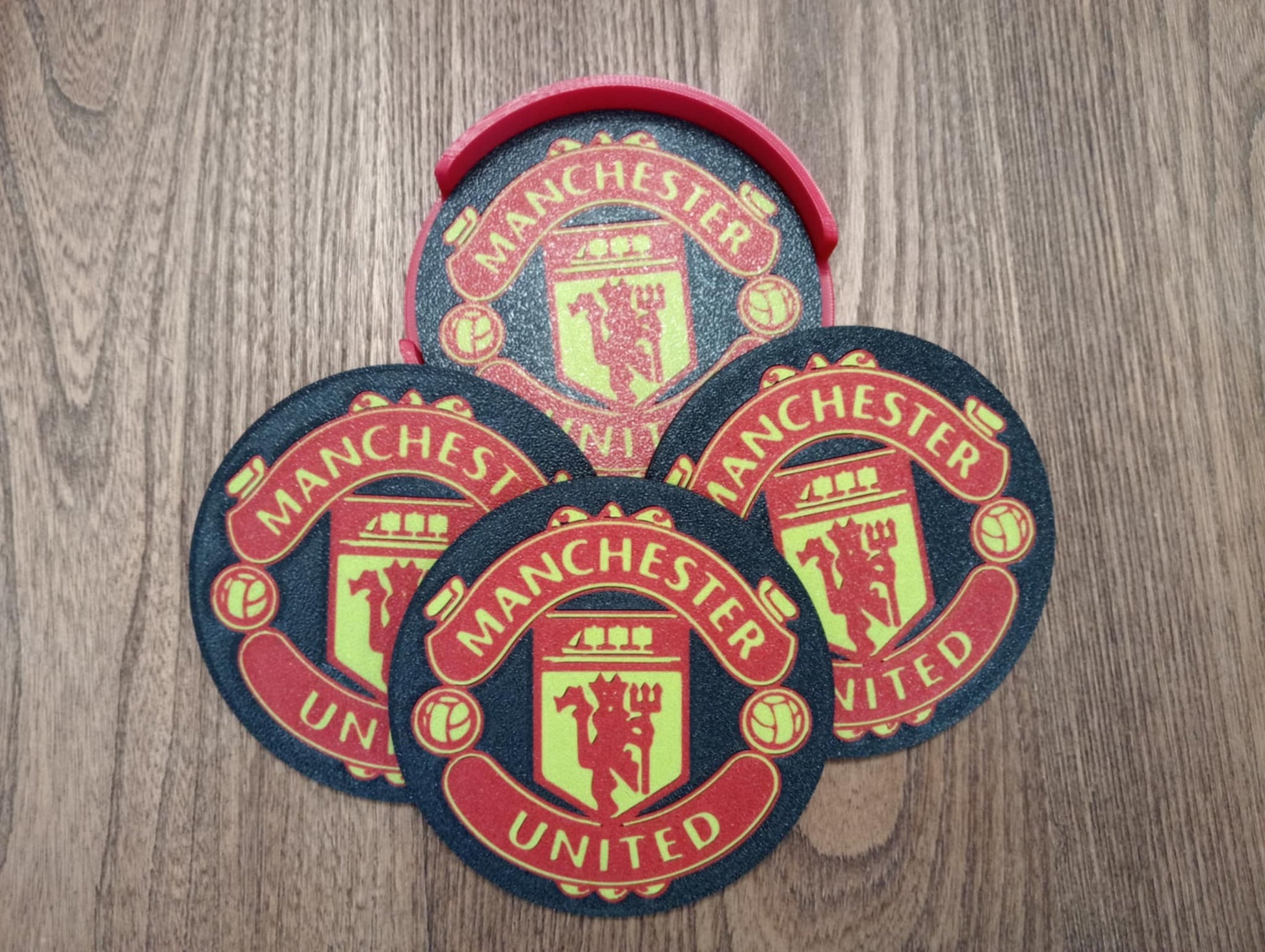 Here we have our Man Utd coaster that would make the perfect gift or a welcome addition to your man cave or she shed. Each set comes with 4 coasters and 1 holder. The size of each coaster is 100mm in diameter and 3mm thick. These have been 3D printed, not screen printed, which means the design will never wear out.